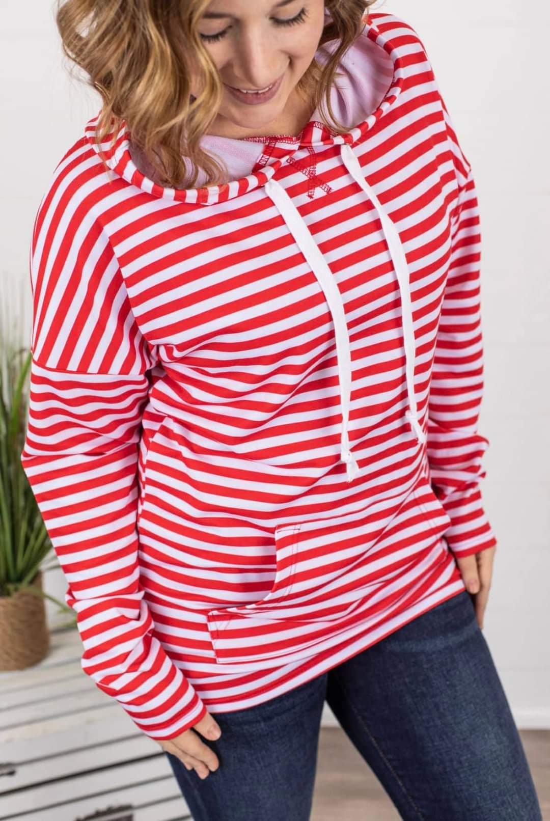 Red and White Lets Sail Away Hoodie