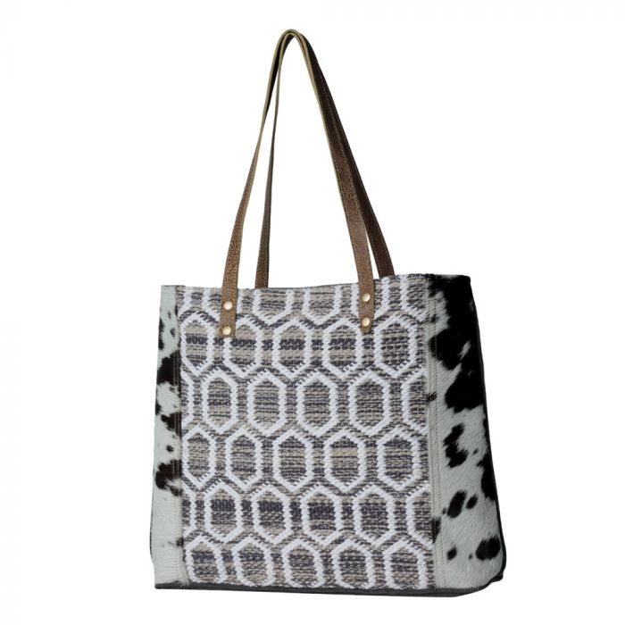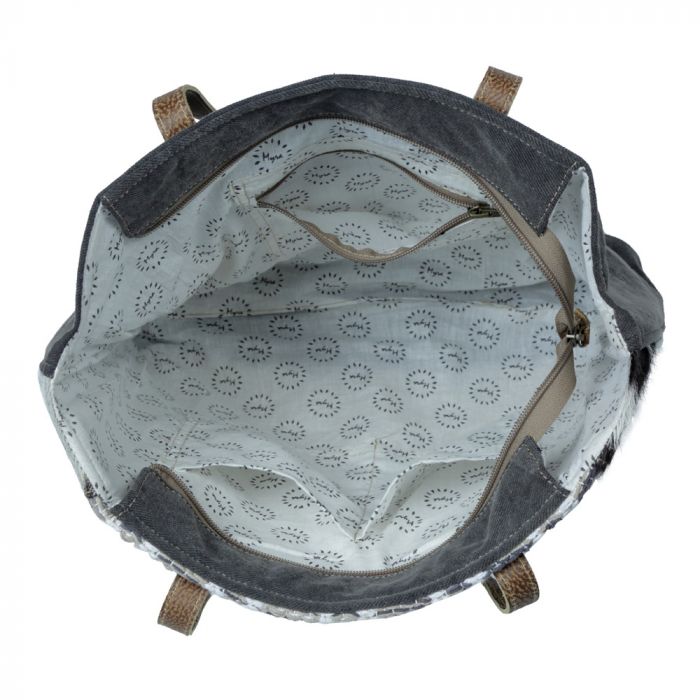 Light up your look with this chic tote bag. The back panel of this bag is made from former military tent material and along with a leather base which lends a sturdy quality to it.